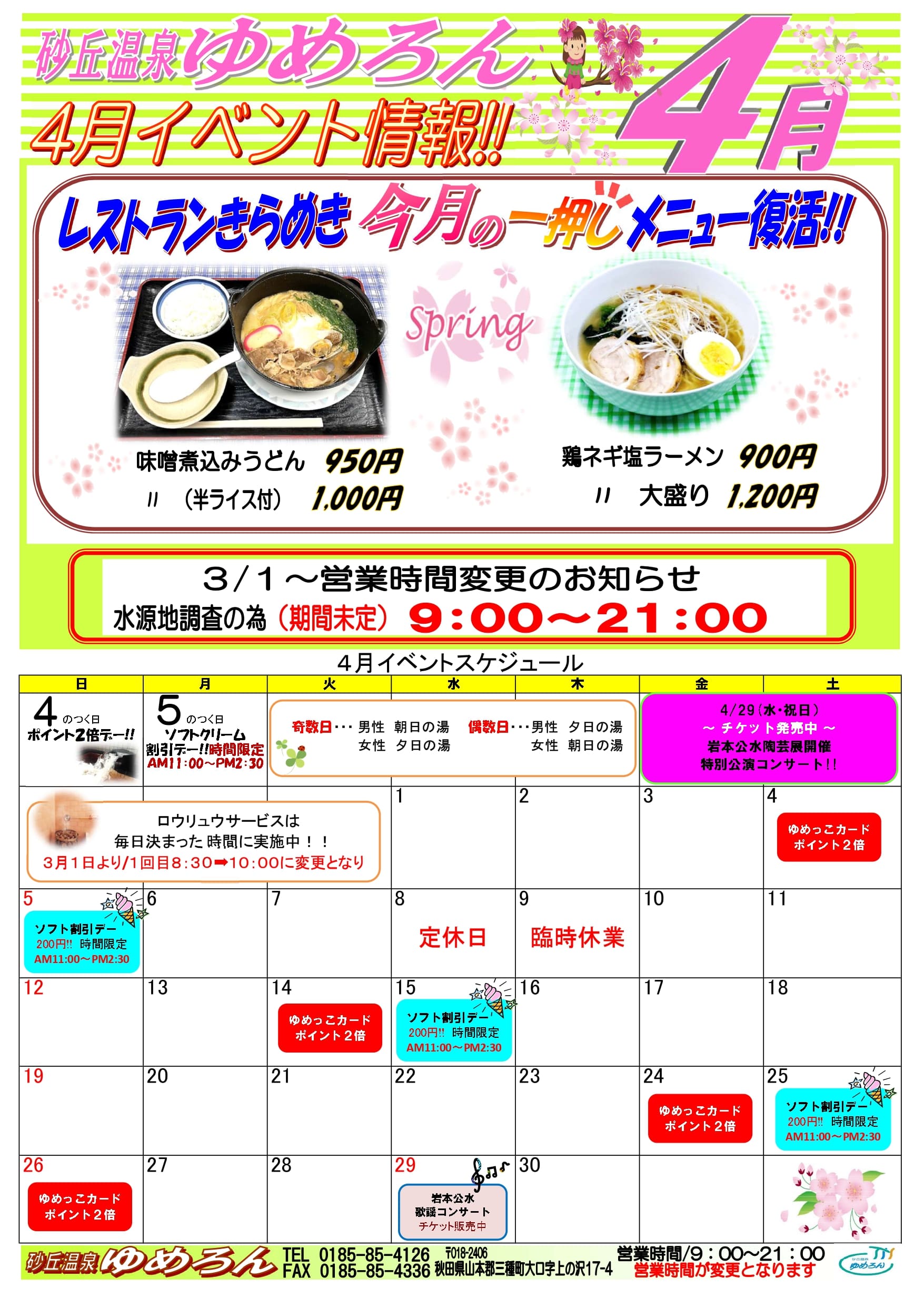 水源地調査のため、下記の通り営業時間を変更させていただきます。