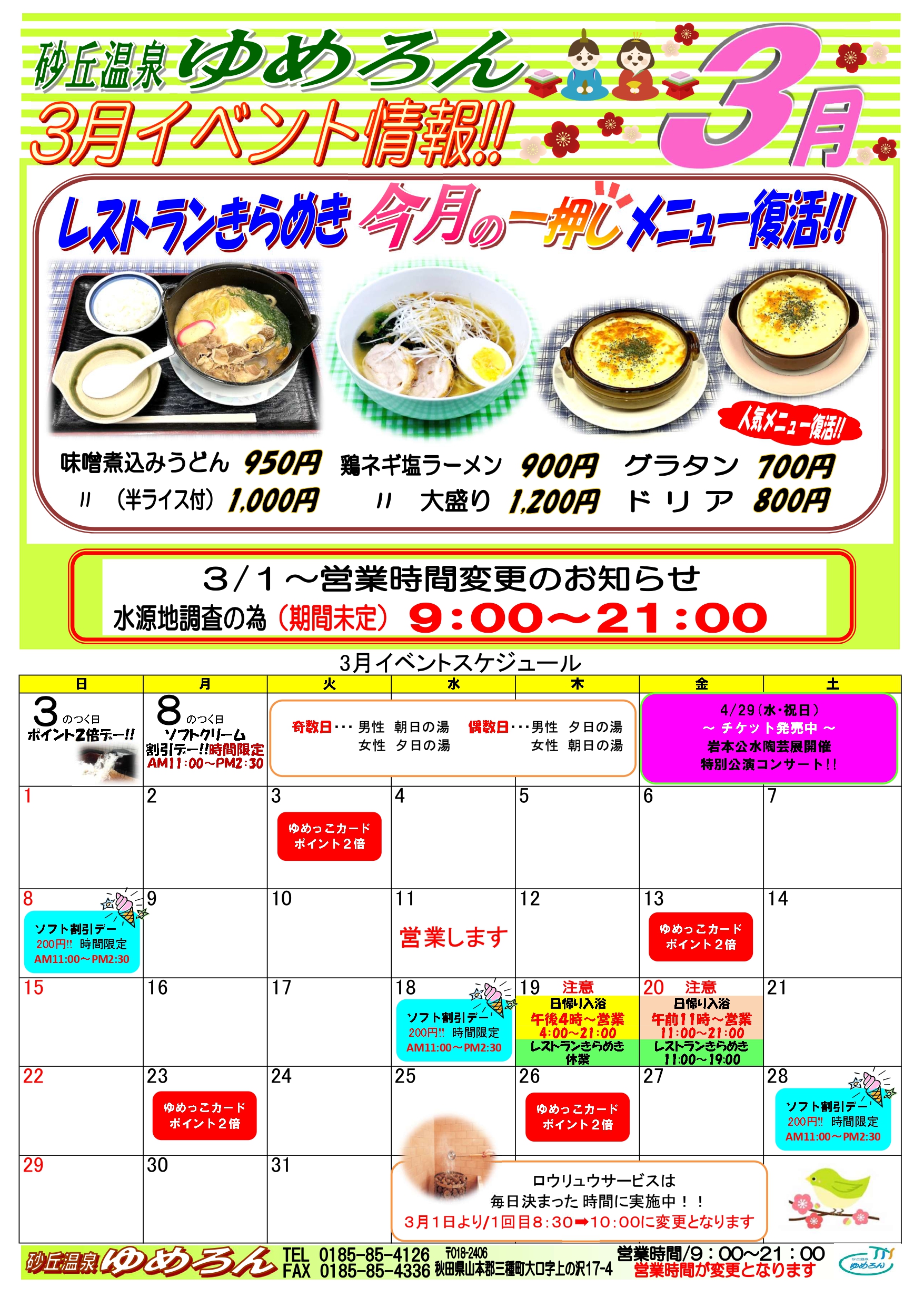 3月イベントカレンダー更新のお知らせ